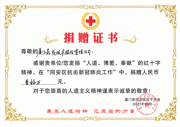 嘉戎技術(shù)也積極投身公益事業(yè) 、回饋社會,為社會和諧發(fā)展貢獻一份力量